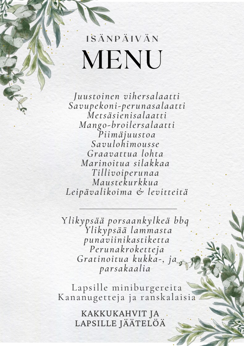 ISÄNPÄIVÄLOUNAAMME TARJOILUT